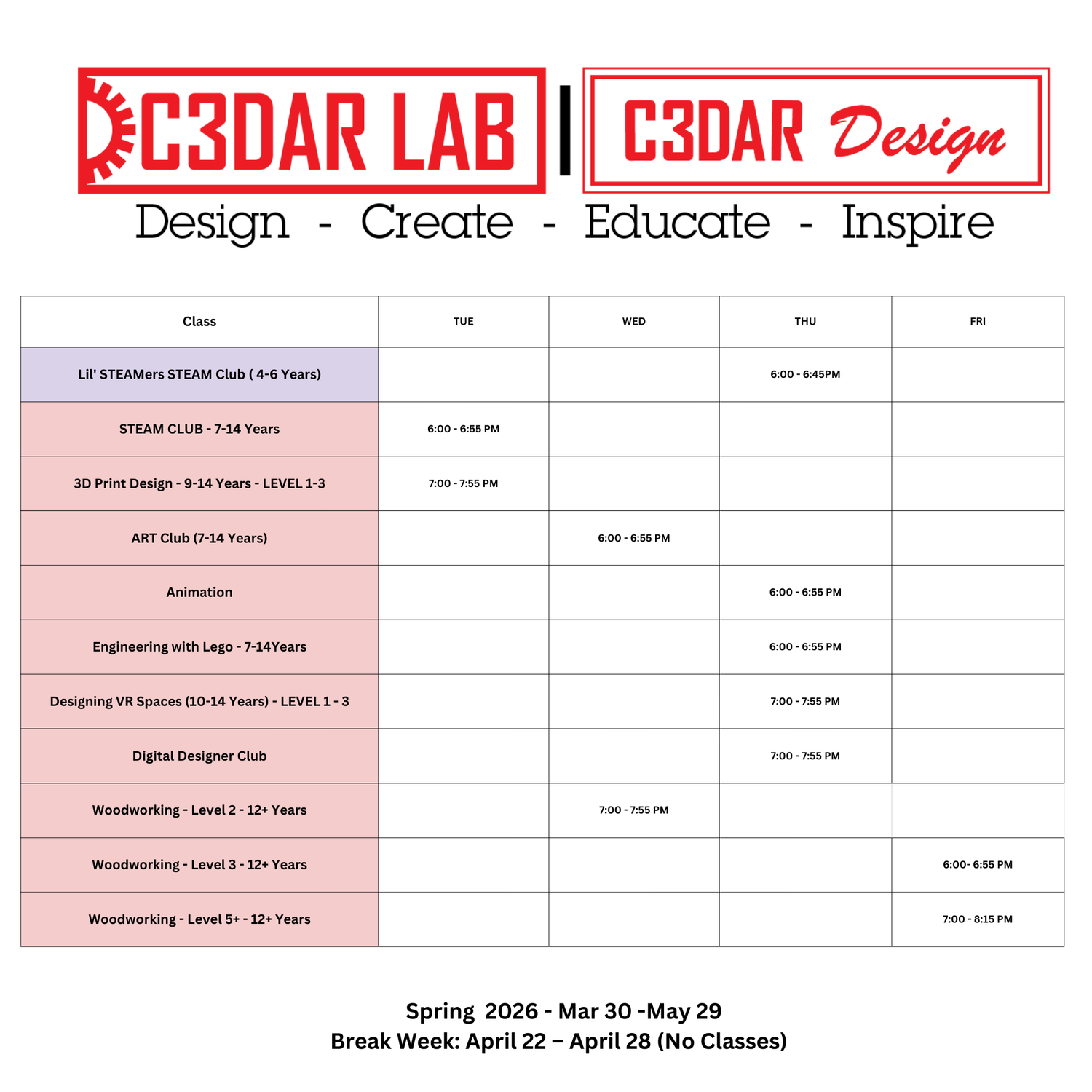 Our Spring session begins the week of March 30 and runs for 8 classes.